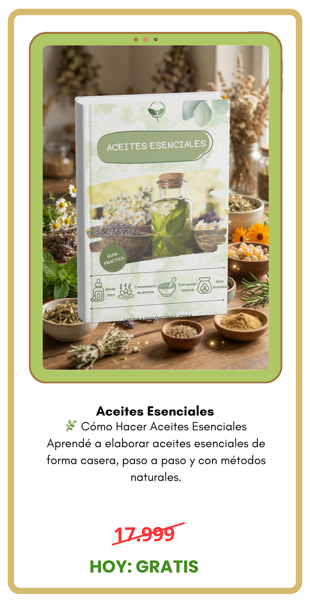 "Llevaba tiempo buscando una guía clara sobre hierbas. Este ebook es súper completo y fácil de entender. Ya preparé mis primeras tinturas."