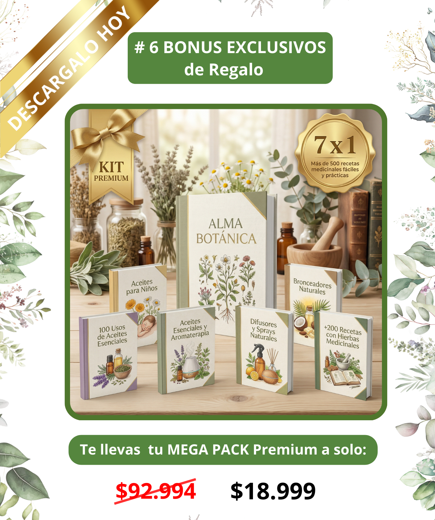 HOY TU KIT PREMIUM con tu EBOOK "ALMA BOTANICA" 6 BONUS de REGALO :